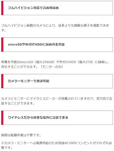 1台の親機に対して複数の子機(カメラ)を接続できるたり、親機の映像をスマホアプリで視聴できたり(パナソニック)、親機をHDMIで外部に接続することで(DXアンテナ)テレビなどの大画面で映像を確認することも可能です。